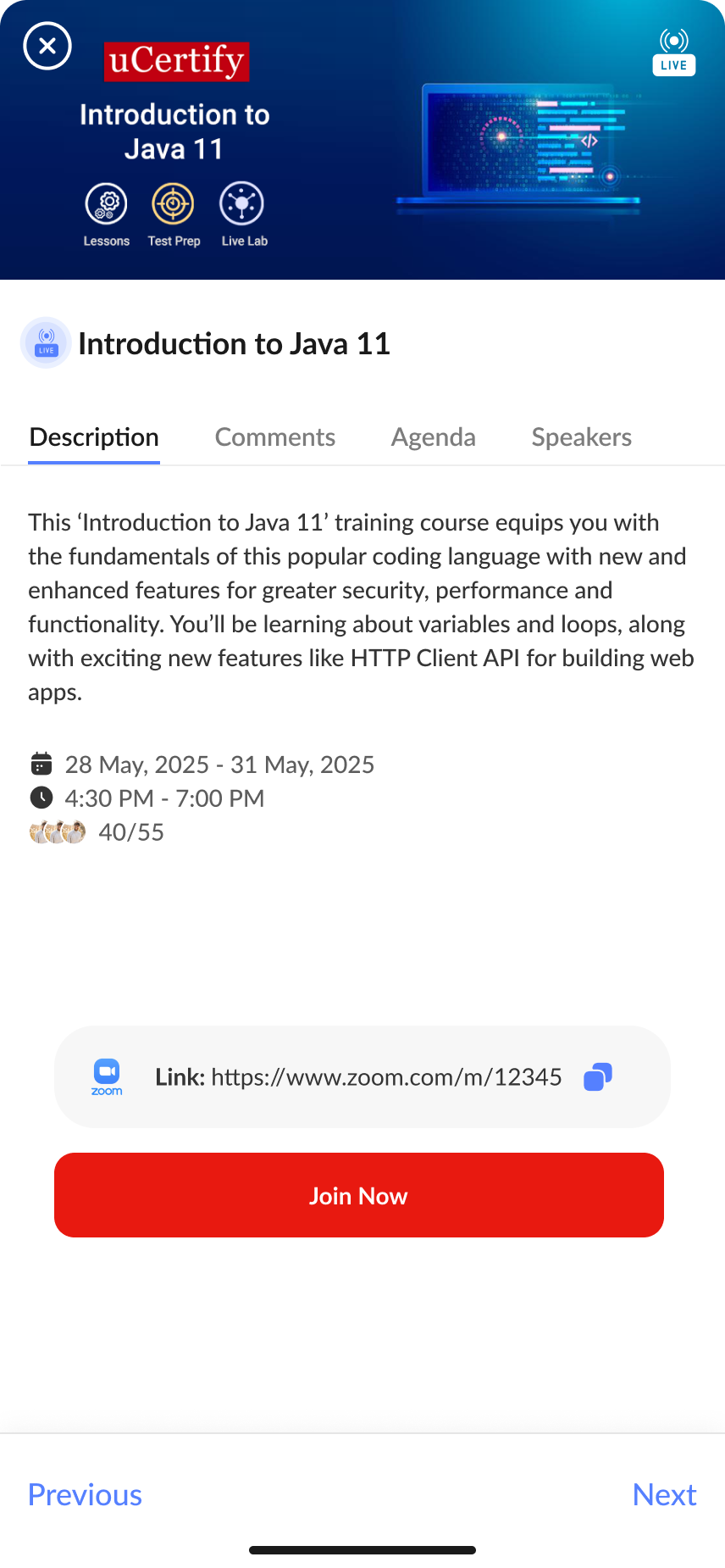 Scheduled sessions, classes, and interactive live events