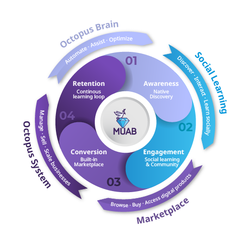 MUAB is a unified knowledge ecosystem that connects social learning, digital commerce, and business operations.