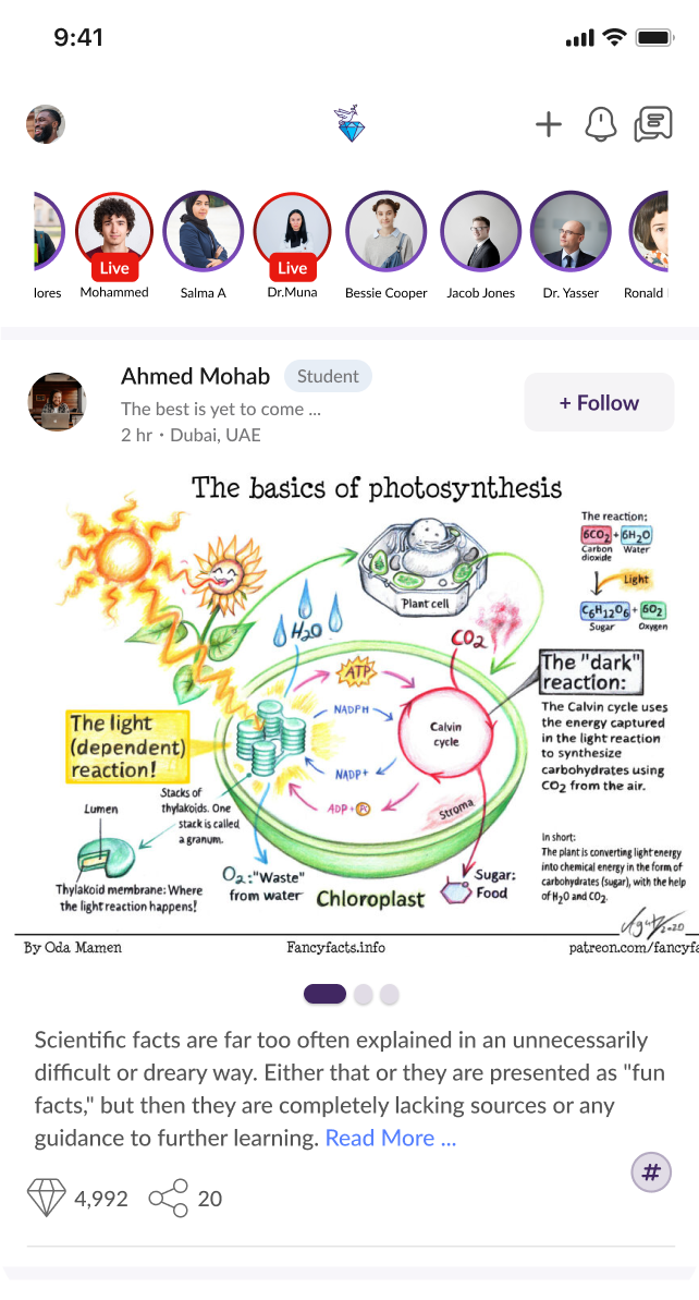 Scroll quick visual insights, join discussions, watch lectures, or explore structured learning, all in one intelligent feed designed to support different learning formats, moments, and goals.
